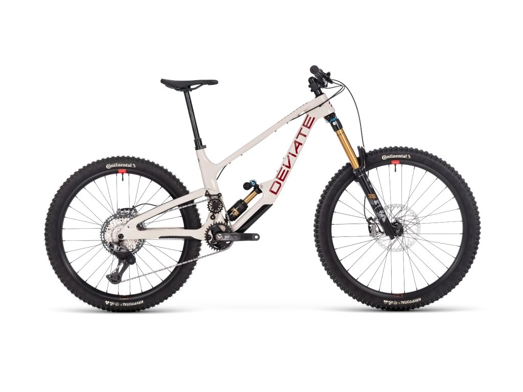 Deviate Guide - první sériové kolo od Deviate. Naprosto odlišné od mainstreamových designů: převodovka odstranila přehazovačku a přesunula hmotnost pohonu více do středu a zároveň snížila neodpruženou hmotnost. Vysoký čep otáčení zadní stavby (ale ne příliš vysoký) s vodicí kladkou pracoval s lehkou zadní stavbou, a tak vytvořil exkluzivní pocit z odpružení a celkově velmi schopné kolo.